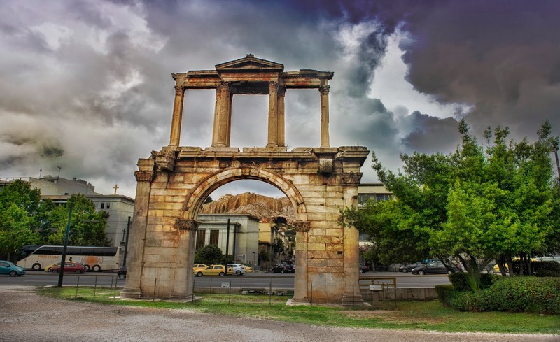 Високата 18 м. врата е направена от мрамор и декорирана в коринтски стил. Адриан е известен със сравнително мирното си царуване и бързото развитие на строителството по негово време. Тогава е реконструирана и крепостната стена около Атина, а Акрполът е превърнат във форт. Така градът се превръща в нещо като втора столица на римската империя.
