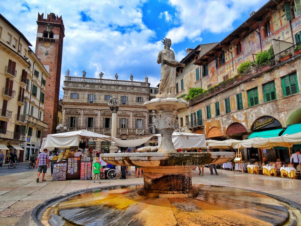Фонтанът, който се издига в центъра на площада, със статуята на Мадона Верона, се е превърнал в своеобразен символ на града.