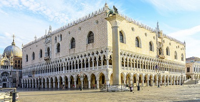 Дворецът е официална резиденция на 120 дожи, управлявали Венеция от 697 до 1759 г. Сградата представлява удивителна смесица от византийска, готическа и ренесансова архитектура. Почти нищо не е останало от първоначалната конструкция от 7 в. Дворецът е бил построен на основата на съществуващи римски стени. Античната сграда е била унищожена от пожар и няколко пъти е била реконструирана. Много известни творци и художници са участвали в украсяването на двореца. Между тях с най-голям принос са Тициан, Веронезе, Тинторето, Белини. Голям интерес предизвикват Залата на Големия съвет, Залата на сената, покоите на дожите, както и затворите със знаменития Мост на въздишките.