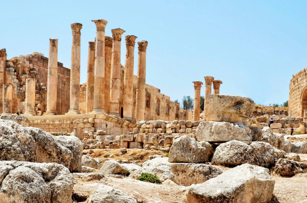 Смятан от мнозина за най-добре запазеният римски провинциален град в Близкия изток – ако не и в света, – Джераш (древният Гераса) е археологически шедьовър, разположен сред плодородните хълмове на Гилеад. Основан от войниците на Александър Македонски през ІV в. пр.н.е., Джераш се присъединява по-късно към процъфтяващите и космополитни градове на римския Декаполис, достигайки своя зенит около 150 г. Неговият просперитет се основава на търговията с кервани, земеделието и рудодобива, а неговите граждани харчат с широка ръка, издигайки разкошни сгради в един характерен „ориенталски бароков“ стил. Златната му епоха е през ІІ и ІІІ в., а впечатляващите петнайсет църкви в града датират от вековете след това. Римските руини включват триумфална арка, форум с необикновена овална форма, стадион, монументален фонтан, топла и студена баня и безброй храмове. Широка улица от колони води към най-разкошния монумент на града: храма на Артемида, богинята покровителка на Джераш, който все още се извисява над градския център.
