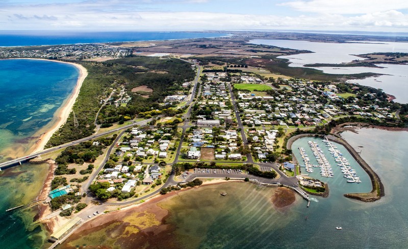 Филип Айлънд формира естествена вълнолома за плитките води на Западното пристанище. Тя е 26 км (16 мили) дълга и 9 км (5,6 мили) ширина, с площ от около 100 км2 (40 кв. Метра). Той има 97 километра (60 мили) брегова линия и е част от Bass Coast Shire.