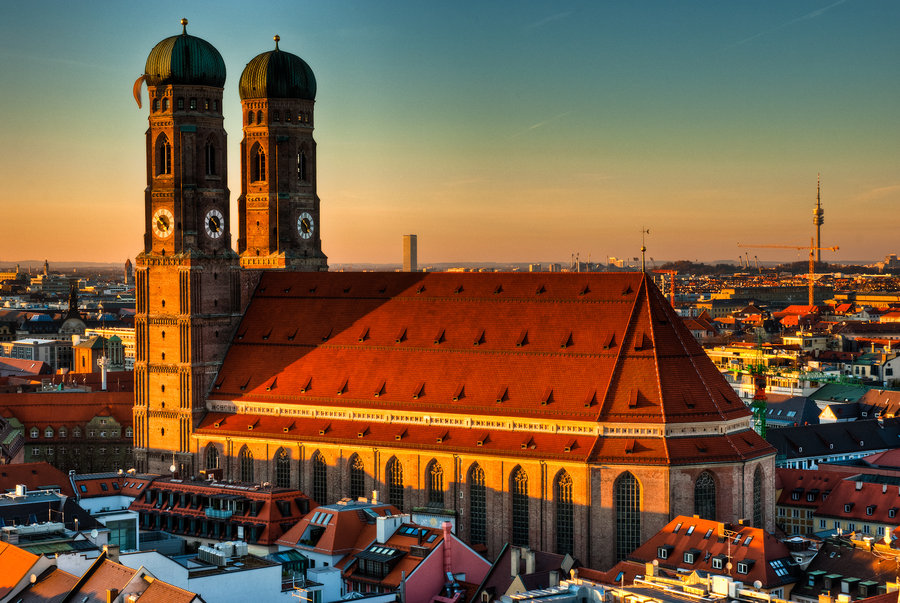 Фрауенкирхе - Катедралата Света Богородица, известна още като Фрауенкирхе, е забележителна късноготическа постройка, датираща от 15-ти век, и която заедно с богатата си история и великолепните си медни куполи се е превърнала в един от запомнящите се символи на града. Първият камък е положен през 1468 г. от Сигизмунд, дук на Бавария, а църквата е завършена за срок от 20 години. Главен архитект е Йорг фон Халсбах. Отличителните й две кули-близнаци, извисяващи се над градските покриви, са високи точно 99 м.