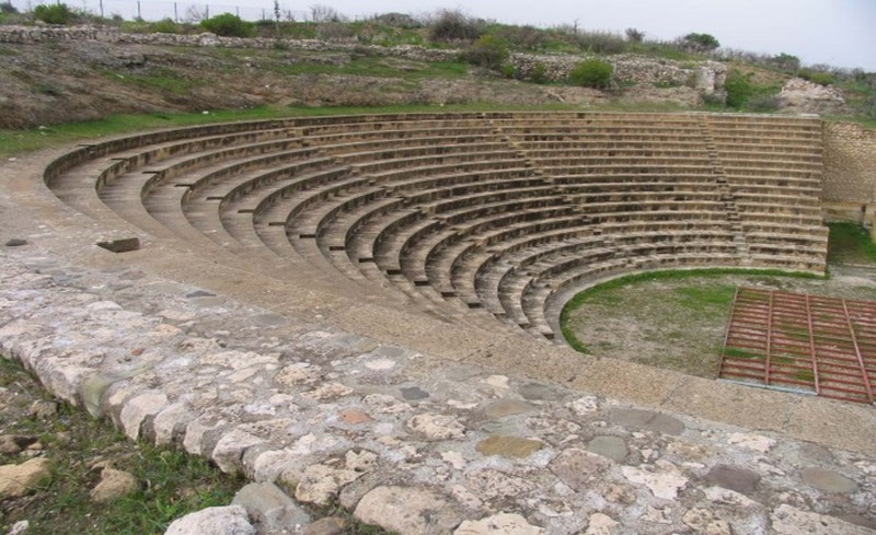 Театърът обикновено е гръцки по дизайн и стил. Той е вграден в хълма със зона за сядане, която може да побере приблизително 3500 зрители. Има полукръгъл оркестър и морето би осигурило фона. Именно през римския период е издигнат сцената. Той е възстановен, както и зоната за сядане през 1962 г., което гарантира, че театърът може да бъде използван и днес за представления, вариращи от професионални концерти и опери до постановки на местните университети.