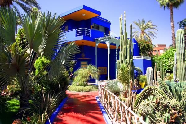 Влизането в градината става през типична мароканска дървена врата и като риад нямате представа какво има отвътре, докато не прекрачите прага. Когато влезете за първи път в градината, вие стъпвате в много малък, интимен двор с фонтан. Ще се почуствате, като избягал в тайна градина, оставяйки зад себе си градската суматоха. Отвъд двора има буйна градина, пълна с еклектична комбинация от растения, заобикалящи басейна. Градината, която Жак построил, живее като негов творчески шедьовър. Всъщност специалният нюанс на смелото кобалтово синьо, който той широко използва в градината и нейните сгради, е кръстен на него - Majorelle Blue. Централната част на градината е бившата му резиденция, двуетажна къща, боядисана в Marjorelle Blue, а възхищение предизвикват прозорците и техните сложно издълбани рамки, боядисани в ярко бяло. Въпреки че относително модерният вид и усещане на градината Маржорел е в пълен контраст с градините и сградите, които виждате в останалата част на Маракеш, заслужава си да ги посетите.