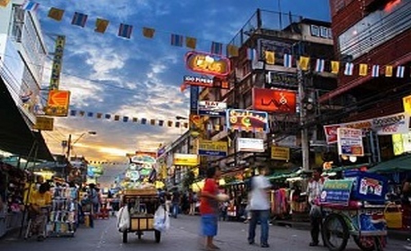 Каосан Роуд (Khaosan Road) се намира в сърцето на Банкок, в района Banglampu