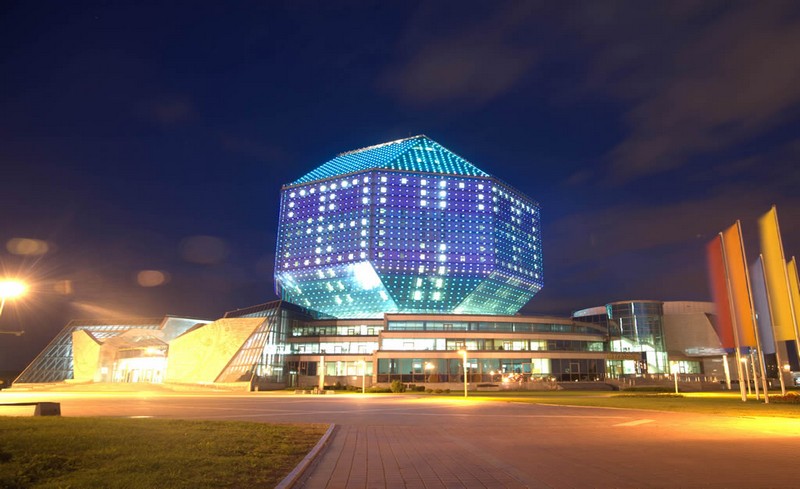 Националната библиотека в Минск е забележителна най-вече поради своята позор: „Пътуване + свободното време“ я нарече една от най-грозните сгради в света. Построена през 2006 г. и победител в международен конкурс за дизайн, странната геометрия на първо ниво е осеяна с „Диамантът“, огромна многостранна сграда, оборудвана с многоцветно светодиодно шоу.