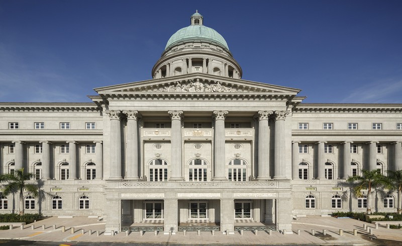 Разположен в градоустройствения район на Сингапур, галерията се състои от два национални паметници, бившата сграда на Върховния съд и кметството и има обща площ от 64 000 квадратни метра (690 000 кв. Фута), което я превръща в най-голямото място за визуални изкуства и най-големият музей в Сингапур. Общо разходи от 532 млн. Долара са отишли в развитието на Националната галерия Сингапур.