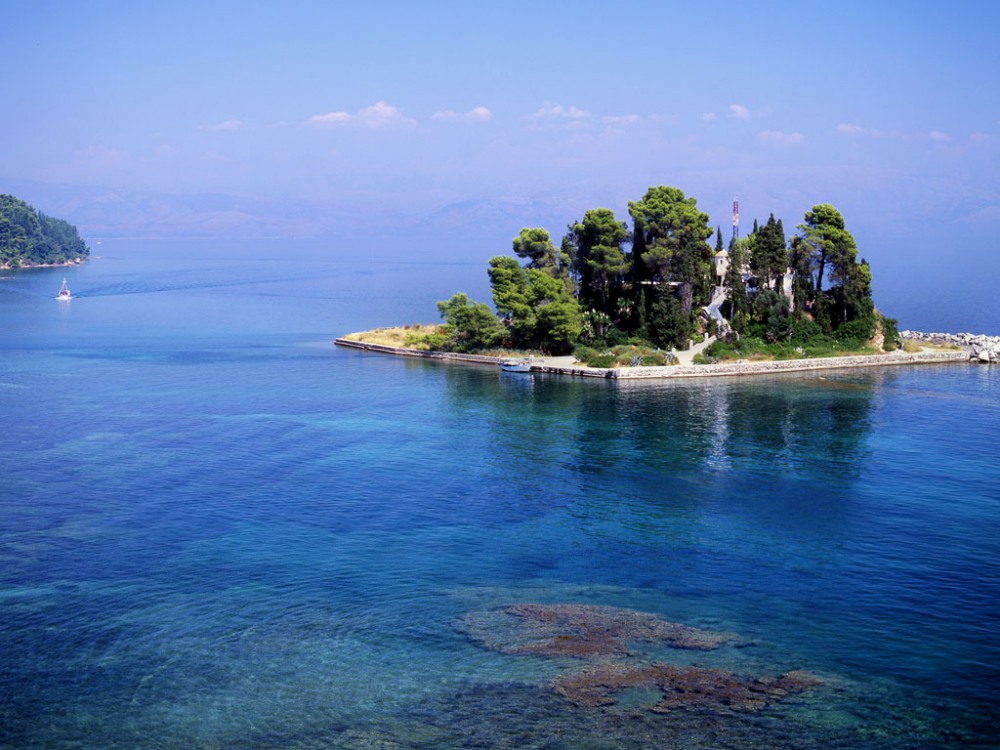 Островът има площ 641 km2, дължина 58 km и широчина 27 km в най-широката си част. Северната му част е планинска, а южната е заета от равнини. Най-висок е връх Пантократор с височина 906 m. В бреговете му плискат вълните си три морета: на запад - Йонийско море, на север - Адриатическо море, на юг - Средиземно море. Заради интересното си местоположение островът притежава уникален, благодатен климат.