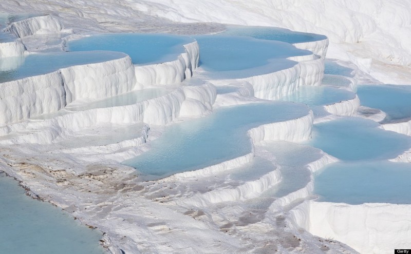 Памуккале (Pamukkale) или „замъка на памука“ (превод от турски) е природна забележителност в югозападна Турция, в провинцията Денизли. На върхът на Памуккале се намира древния град Йераполис, като и двете са в списъка на ЮНЕСКО за световно наследство. Благодарение на тектонични движения в падината на река Мендерес се създават множество земетресения. В следствие от тях се получават множество минерални извори. В тези извори се съдържало голямо количество варовик и така се е образувал Памуккале. Той прилича на замръзнал водопад. Изключително красиво място. Клеопатра е посещавала това място и ако искате можете да се потопите в нейния извор - извора на Клеопатра. Преди да влязат в списъка на ЮНЕСКО в Йераполис са били построявани хотели, като част от града е бил разрушен. Автомобили и мотори били карани там, хората се къпели в изворите и се разхождали с обувки като малко по малко отнемали красотата на мястото. След влизането им в защитения списък хотелите са намалени до минимум, с колите се стига до определено място, а разходки се правят само ако сте боси, за да не се замърсява мястото. В някои от изворите можете да намерите и попови лъжички.