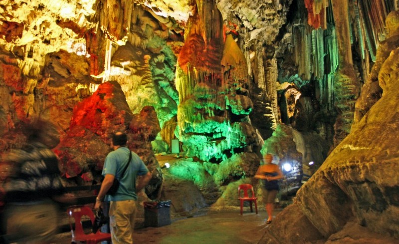 Той се използва като театър от началото на шейсетте години с капацитет за 600 души. В някакъв период от време в историята на тази пещера част от сталагмида става твърде тежка от едната страна и пада, вероятно преди хиляди години. Сега тя се намира от едната страна в далечния край на главната камера, като през годините се притиска към пода в пещерата. През 1972 г. от горния край се отрязва парче, което разкрива вътрешната структура на сталагмата по най-драматичен начин.