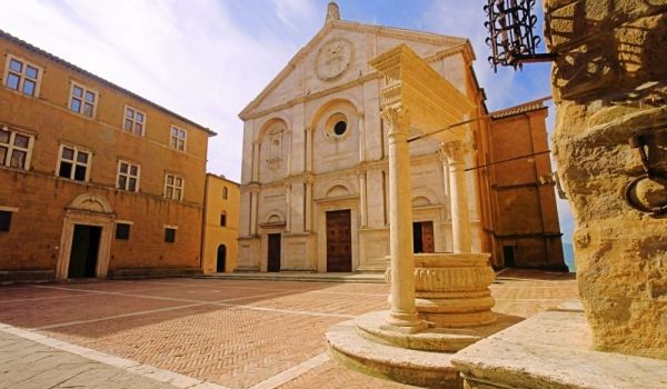 Пиенца дължи славата си на родения в града бъдещ папа Пий II. По негова заповед са построени повечето от историческите сгради в центъра, разположени около главния площад. През 1458 г. папата поръчва на именития архитект Бернардо Роселини да превърне неизвестното тогава градче в лятна резиденция на светия отец. Днес на това място се намират катедралата, дворецът Пиколомини, църквата ”Св. Франциск”, дворецът Борджия, епископският дворец и др.