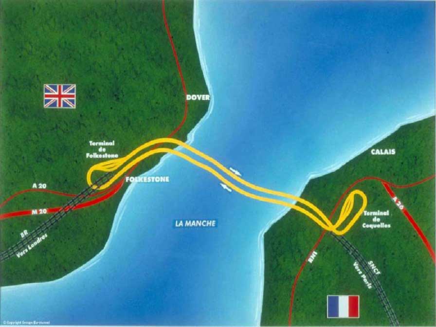 На 6 май 1994 г. британската кралица Елизабет II и френският президент Франсоа Митеран откриват официално тунела. Редовното движение на влаковете започва месец по-късно. Това е краят на една сага, започнала на 20 януари 1986 г., когато двамата политици подписват договор за съвместно строителство на тунел под Ла Манш от Великобритания и Франция.